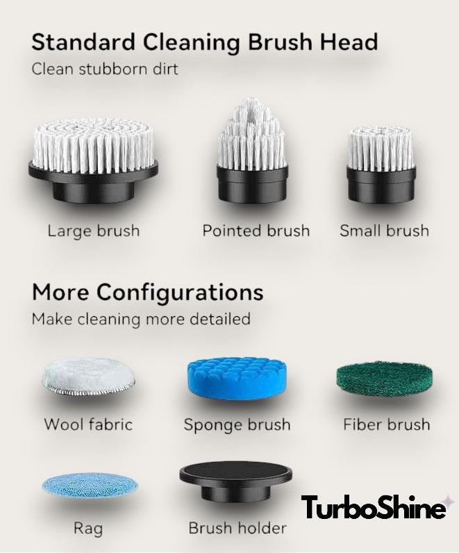 After countless hours of testing and perfecting, we created TurboShine to make cleaning faster, easier, and more powerful than ever. With multiple brush heads and strong scrubbing action, it removes dirt, grease, and stains from kitchens, bathrooms, windows, and even car wheels—so you don’t have to.